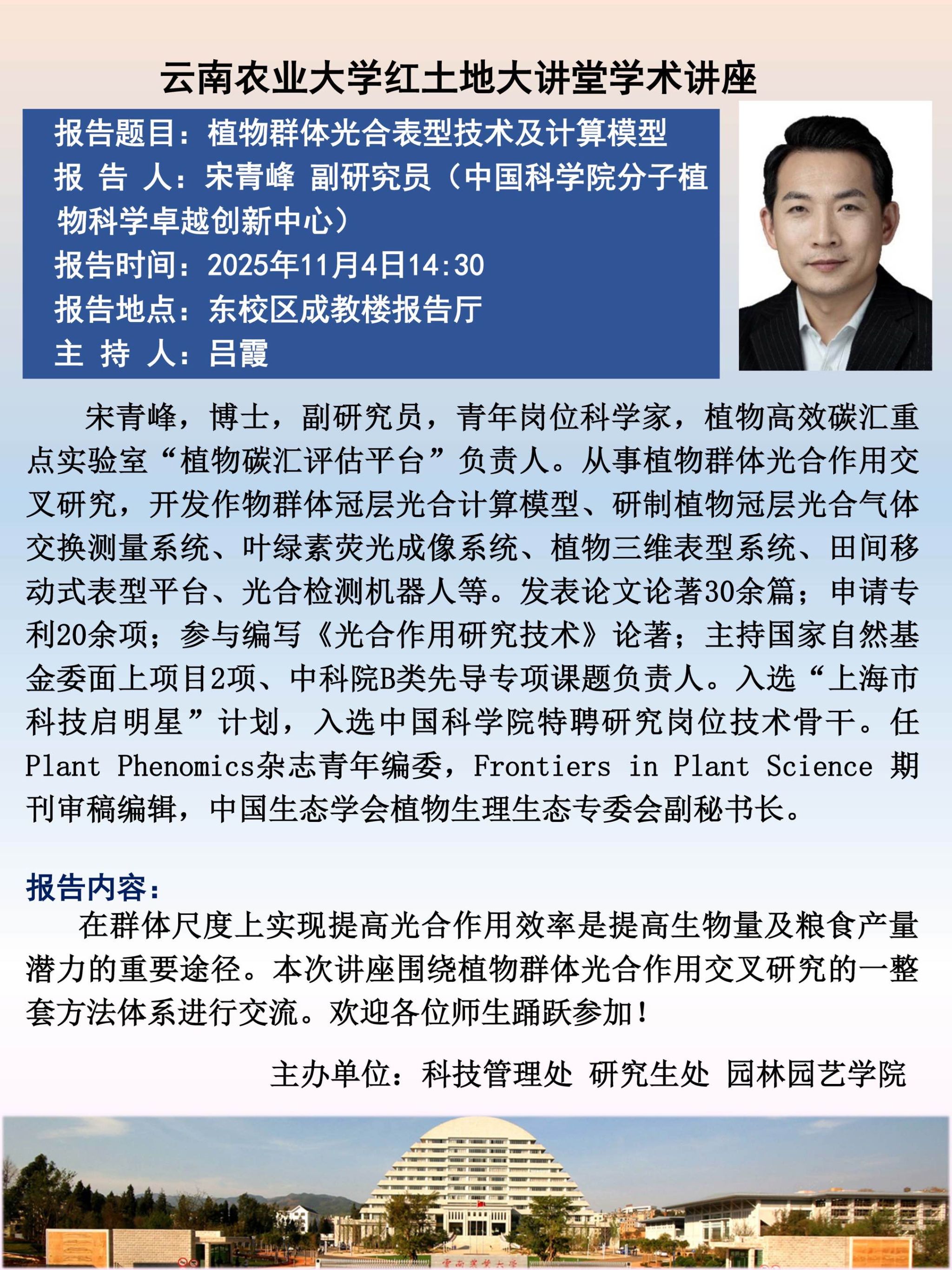 11月4日“红土地”大讲堂:植物群体光合表型技术及计算模型