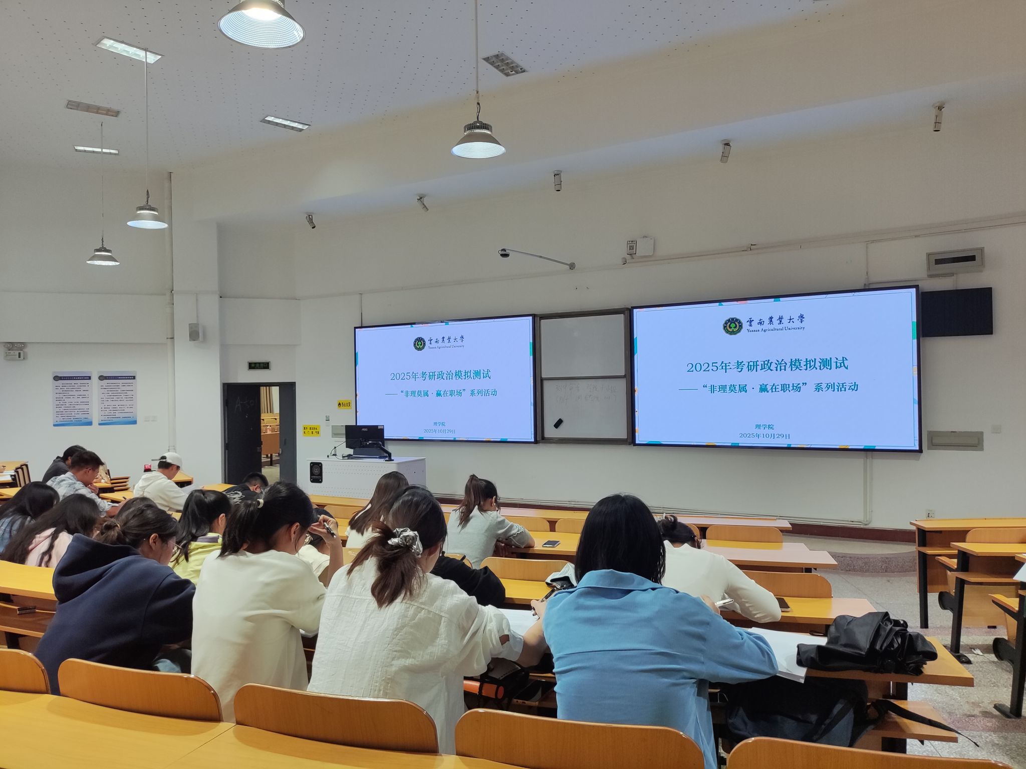 本站消息 为帮助考研学子熟悉考试流程、精准定位复习短板,10月22日、10月29日,理学院在逸夫楼A501教室分阶段开展考研英语、政治模拟测试活动,学院2022级、2023级考研备考学生参加。