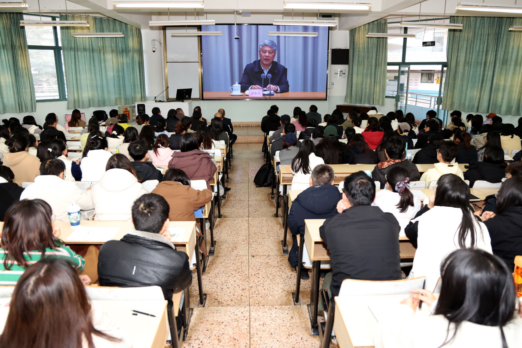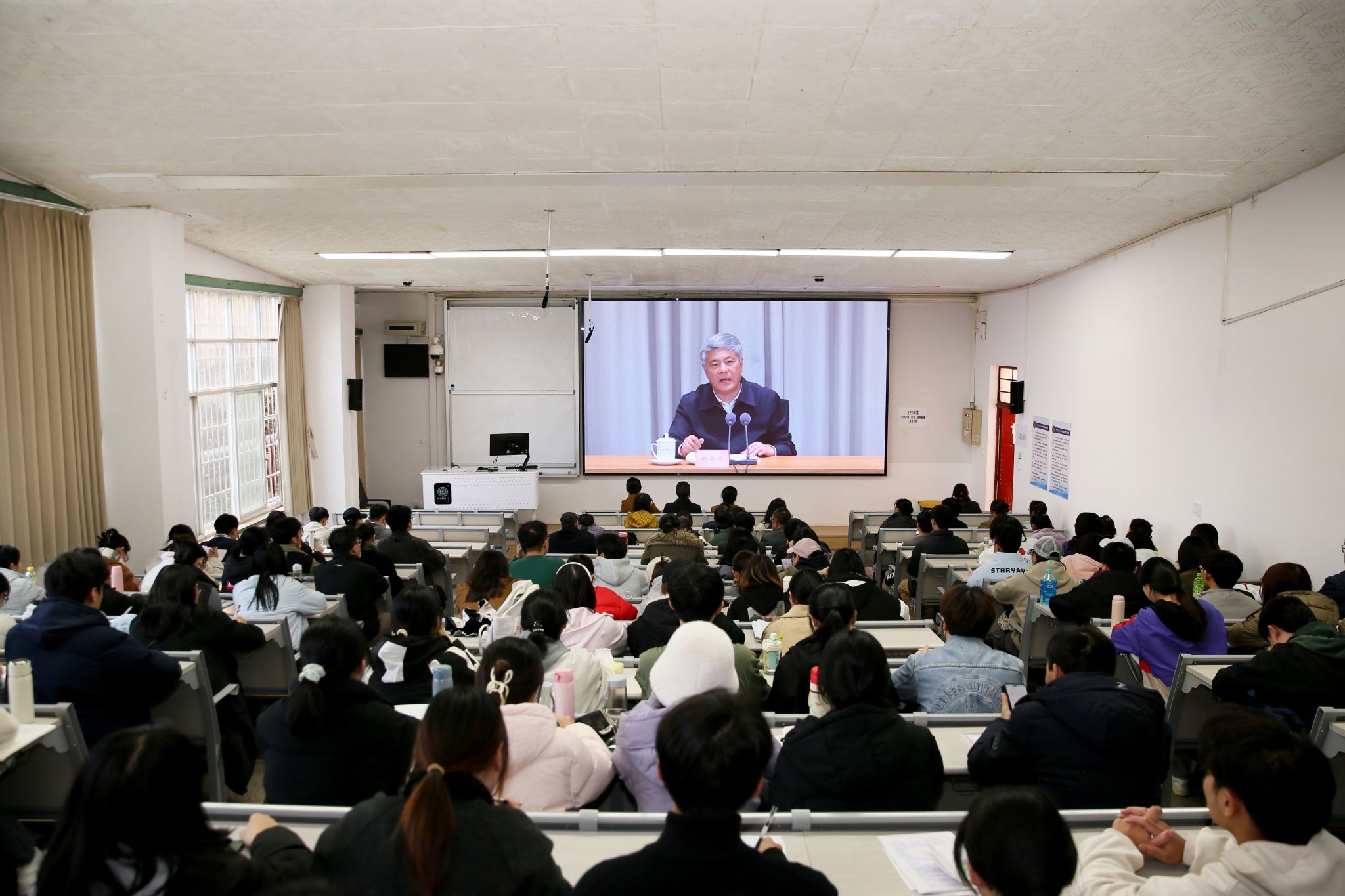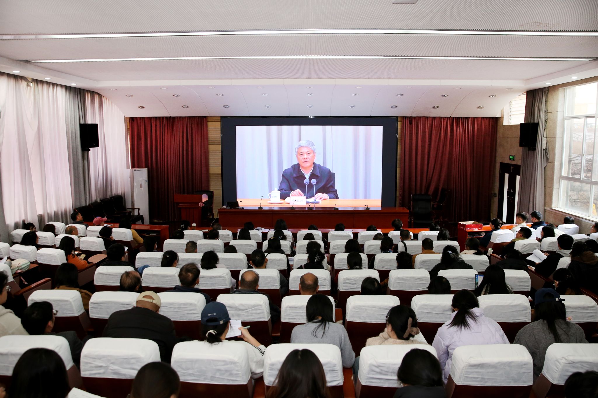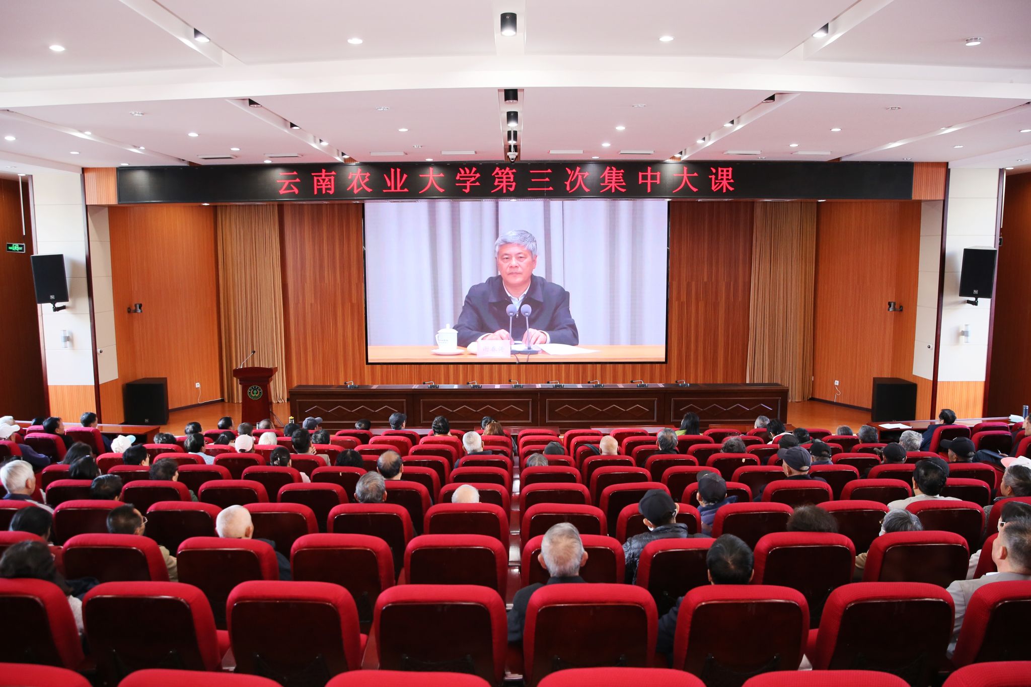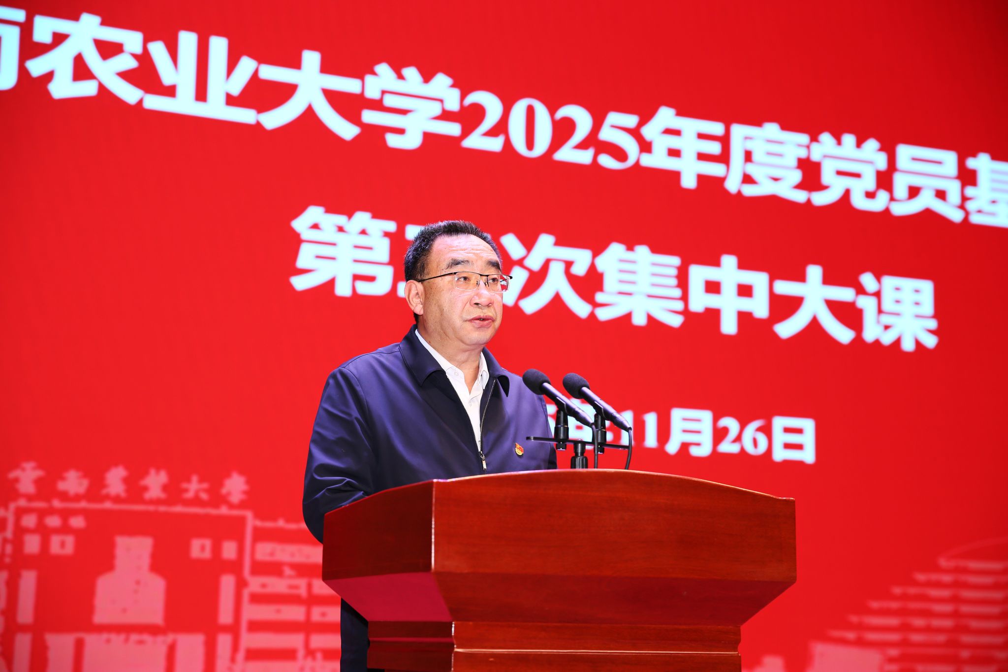 本站消息 11月26日,学校组织全校师生党员开展2025年党员基本培训第三次集中大课,共同聆听由中央党校(国家行政学院)副校(院)长谢春涛主讲的《中国共产党与中华民族伟大复兴》专题辅导。会议由学校党委书记王卫斌主持,学校党委委员、党员校领导及3754名师生党员,在1个主课堂和21个分课堂参加学习培训。