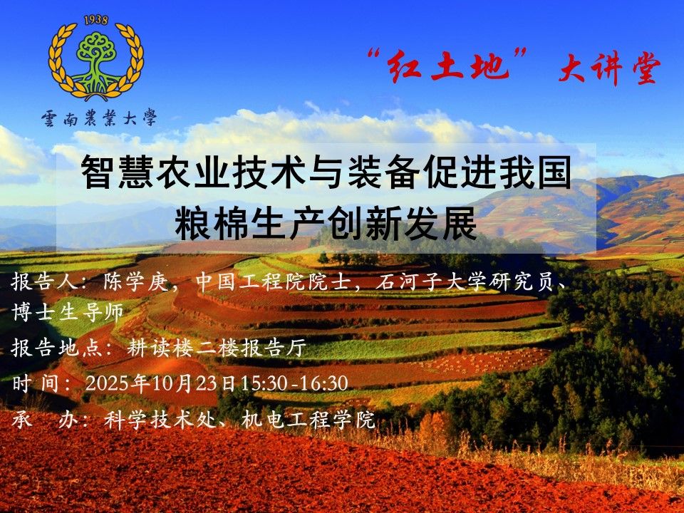 10月23日“红土地”大讲堂: 智慧农业技术与装备促进我国粮棉生产创新发展