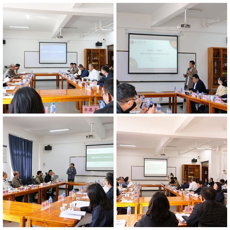 研讨环节,热带作物学院首先分享了咖啡科学与工程专业人才培养体系的构建与实践经验。随后,普洱学院、保山学院分别汇报了各自学院在该专业建设中的基本情况、推进举措及阶段性成果。与会专家围绕三家单位的分享内容,聚焦咖啡科学与工程专业特色化发展方向,就人才培养改革展开深入研讨,从学科专业定位、人才培养目标优化、课程体系构建等多个维度充分交流意见、建言献策,最终达成协同推进该专业高质量发展的共识。