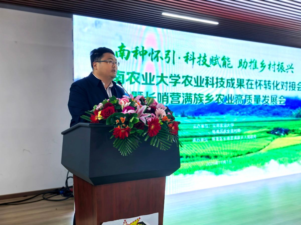 李永和在致辞中强调,学校始终以“服务国家种业振兴、助力乡村振兴”为办学使命,此次合作是校地协同、南北农业优势互补的重要探索。他明确提出三点合作方向:一是拿出诚意深化协同,充分发挥学校在作物育种、关键技术研发、种质资源利用等优势,以开放包容的姿态对接怀柔区农业发展需求,构建 “南种北引、北需南应”的资源共享格局;二是拿出实招推动落地,学校科技服务团队联合政府和企业,聚焦玉米等优质品种的迭代优化、标准化种植技术培训、市场渠道搭建,打通全产业链服务链路,确保科技成果落地;三是拿出机制保障长效,建立“校地企三方协同”合作机制,实现科技资源与地方产业需求的精准匹配,为怀柔农业高质量发展提供持续的科技与人才支撑。